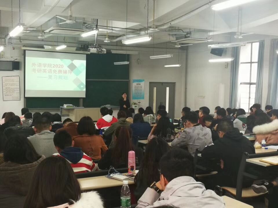 3月9日上午,由威廉希尔官网组织的2020年考研英语免费辅导班正式开课。辅导班将持续12周,共14位外语学院优秀教师积极参与。第一次讲座主题为考研英语复习规划,主讲教师为公共外语教研室郭鑫老师,百余名立志考研的2016级同学参加了此次讲座。本次授课效果良好,到课学生学习热情高涨。