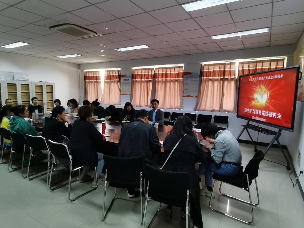 2021年5月6日下午,主持学校党委工作副书记石峰为williamhill英国威廉希尔党员、干部做党史学习教育宣讲报告。williamhill英国威廉希尔党总支书记王建富主持会议,总支全体党员参加会议。
