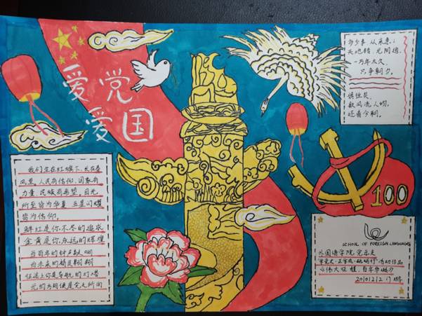 为了进一步扎实推进党史学习教育,引导广大入党积极分子厚植爱党、爱国、爱社会主义情怀,williamhill英国威廉希尔党总支组织入党积极分子开展了“学党史,悟思想,正学风”手抄报活动。本次活动共收到作品30余幅,展示了中国共产党的光荣历史,中国翻天覆地的变化,当代青年积极向上的精神风貌。同学们将国旗、党旗、天安门、长城、华表、和平鸽这些经典图案和地标建筑绘制在一幅幅精美的手抄报上,表达了对党和国家的热爱,彰显着当代青年坚定理想信念,勇担时代使命,积极发挥先锋模范作用的赤诚之心。