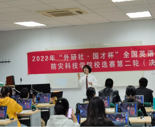 10月16日晚19:00-21:00,由外语研究与教育出版社主办,防灾科技学院williamhill英国威廉希尔承办的2022年外研社•国才杯"全国英语演讲比赛校选赛第二轮决赛在承基楼1103举行。本次演讲决赛由williamhill英国威廉希尔教师冯雷、高志香、霍雨光、李恩庆、张莉五位教师担任评委。本次比赛分为两轮,第一轮为校选赛初赛,72名选手参加了初赛,从中根据成绩排名,遴选出22名选手参加第二轮决赛。校选赛决赛分为两个环节,第一个环节为定题演讲,与初赛题目相同。在第二个环节中,非英语专业选手进行的是即兴演讲环节,现场抽取演讲题目并进行即兴演讲,英语专业选手进行的是即兴问答环节,现场抽取问题并即兴回答。