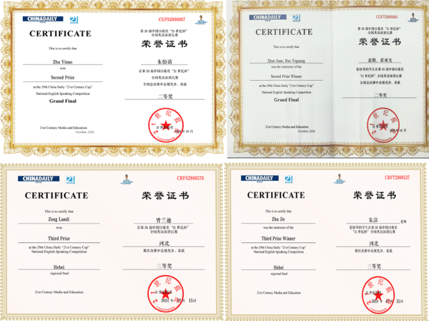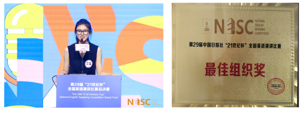 近日,由中国日报社、21世纪英语教育传媒举办的第29届中国日报社“21世纪杯”全国大学生英语演讲比赛全国总决赛在江苏无锡举行。威廉希尔官网22级本科生朱怡诺同学荣获全国总决赛二等奖,刷新了威廉希尔官网在该项赛事中的最佳成绩纪录。