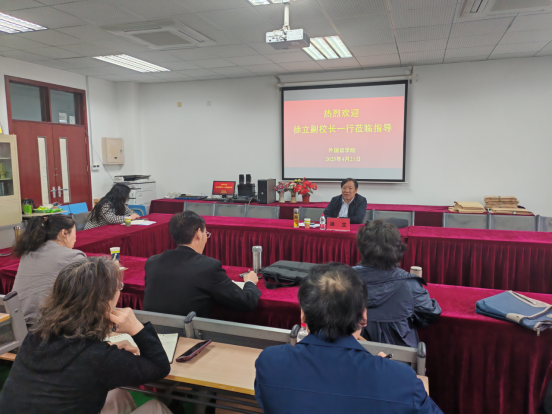 4月21日,学校联合党委常委、副校长徐立到williamhill英国威廉希尔开展调研座谈,对翻译硕士点申报及学科建设进行了深入指导和交流,williamhill英国威廉希尔党政领导、各系科室中心主任参加会议。