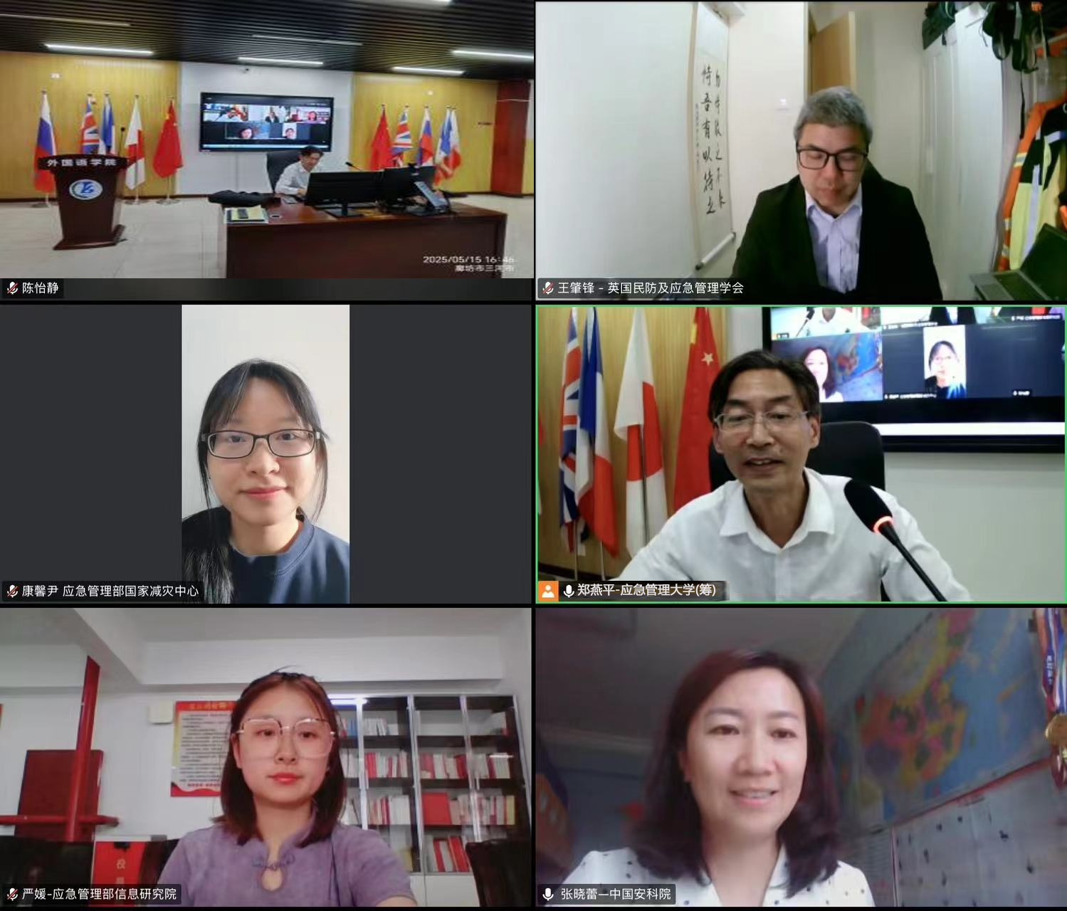 5月15日下午,应急管理部国家减灾中心国际合作部一级翻译康馨尹,中国安全生产科学研究院新业态安全研究所高级工程师、注册安全工程师、高级合规师张晓蕾,应急管理部信息研究院工程师严媛、英国民防与应急管理学会王肇锋等专家学者,应邀参加威廉希尔官网williamhill英国威廉希尔举办的应急管理外语人才培养研讨会。会议由学院副院长郑燕平教授主持,学院领导、专业负责人、英语和日语专业教师共计30多人参加会议。