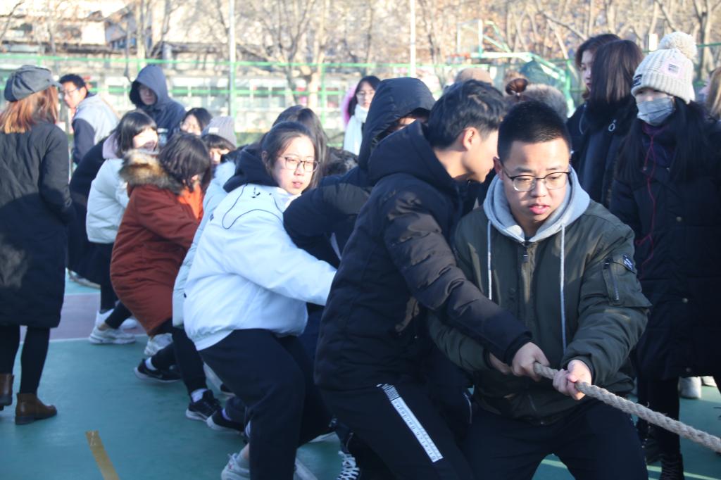 为丰富williamhill英国威廉希尔同学们的大学生活,加强同学们的冬季体育锻炼,增强身体素质,提高团体合作能力,加强集体意识,并为大一到大三的同学们提供一个展示班级凝聚力的舞台,特于2018年12月6日在南校篮球场进行williamhill英国威廉希尔拔河比赛。在经过多组循环赛后,大一二班、大二二班和大三一班三个班级进入了最终的决赛,争夺本次拔河比赛的前三名。决赛于12月7日进行。最终,经过激烈的角逐,大一二班获得冠军,大二二班获得亚军,大三一班获得季军。观看本次比赛的有williamhill英国威廉希尔团总支学生会体育部部长和热情的同学们。