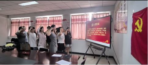 在张馨月同志的领誓下,所有党员面向党旗,右手握拳高举,以饱满的热情、坚定的语气庄严宣誓。“我志愿加入中国共产党……”字字千钧的誓言回荡会场,既是对党忠诚的郑重承诺,更是践行初心使命的坚定决心。